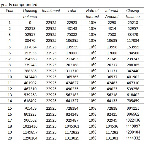(26000-3075) = Rs 22925/- annually ; you will get Rs. 14,44,332/-