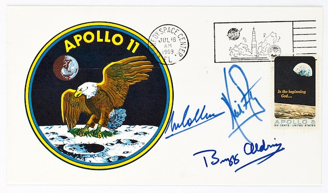 These astronauts had been signing autographs since the day they were announced as astronauts. They gave them to a friend. And on important days — the day of the launch, the day the astronauts landed on the moon — their friend got them to the post office and got them postmarked, and then distributed them to the astronauts' families.