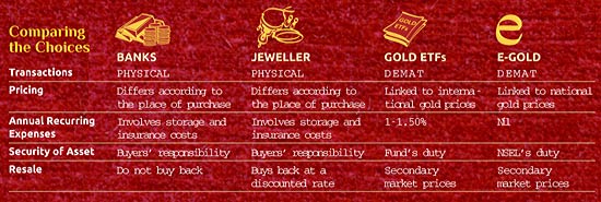 I am looking to buy gold for my daughter's marriage. Checked various options - physical gold, e-gold and ETF. Physical Gold rejected due to security issues. Could you please suggest me the best between - E-gold or ETFs?