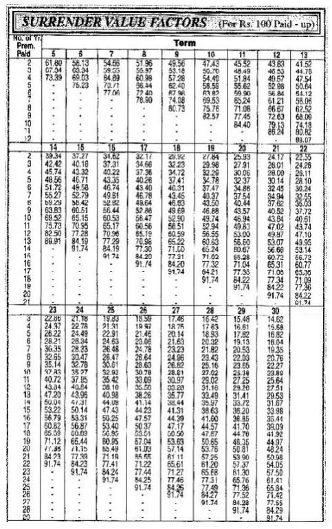 Can you please guide me how to work out OR get this surrender value factor?